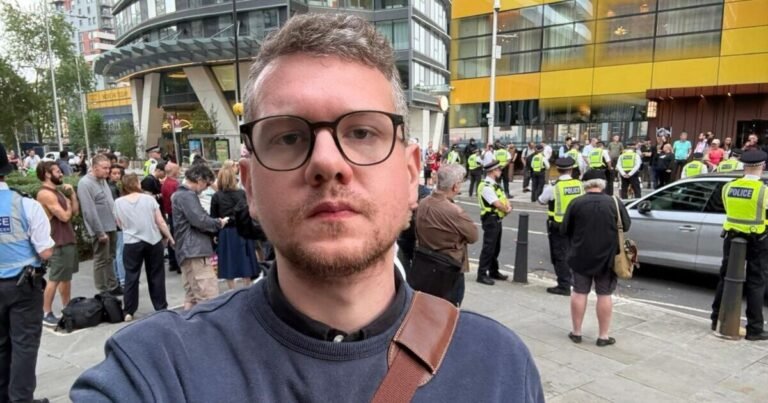 Many of the day was spent ready across the lodge for asylum seekers to reach. Crowds of police got here and went, with the anticlimaxes interspersed by interviews with residents and politicians. Alex Wilson, a Reform UK London Meeting Member, dropped by and mentioned it was “inevitable” that different resorts would see related scenes within the capital, because the scenario had been “foisted on” locals.