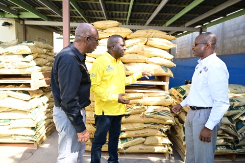 Performing Director Basic, Jamaica Agricultural Commodities Regulatory Authority (JACRA), Wayne Hunter (proper), is in dialogue with (from left) President of the Jamaica Espresso Growers Affiliation, Donald Salmon, and President of the Jamaica Espresso Exporters Affiliation, Dr. Norman Grant. Event was a ceremony held at JACRA’s headquarters in Kingston on December 17, handy over greater than 2,000 luggage of fertiliser, valued at roughly $10 million, to key companions within the espresso sector. The initiative in consistent with JACRA’s dedication to help productiveness and sustainability in Jamaica’s espresso business following the passage of Hurricane Melissa.