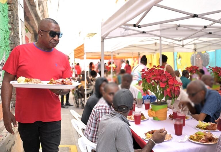 Residents from homeless shelters throughout the Company Space share in meals in the course of the Kingston and St. Andrew Municipal Company’s (KSAMC) annual Christmas Dinner, held on Thursday (December 25). Staged at Water Lane in downtown Kingston, the occasion introduced collectively beneficiaries from the Desmond McKenzie Transitional Centre for the Homeless and the Marie Atkins Night time Shelter, fostering fellowship, care and festive cheer.