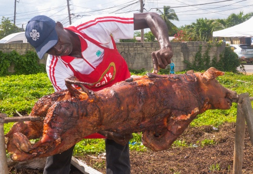 Caretaker, Lauriston/Thompson Pen Group 4-H Membership, Brian Smith, demonstrates the roasting of a pig on a spit through the latest staging on the membership’s annual stew pageant held in Spanish City, St. Catherine.