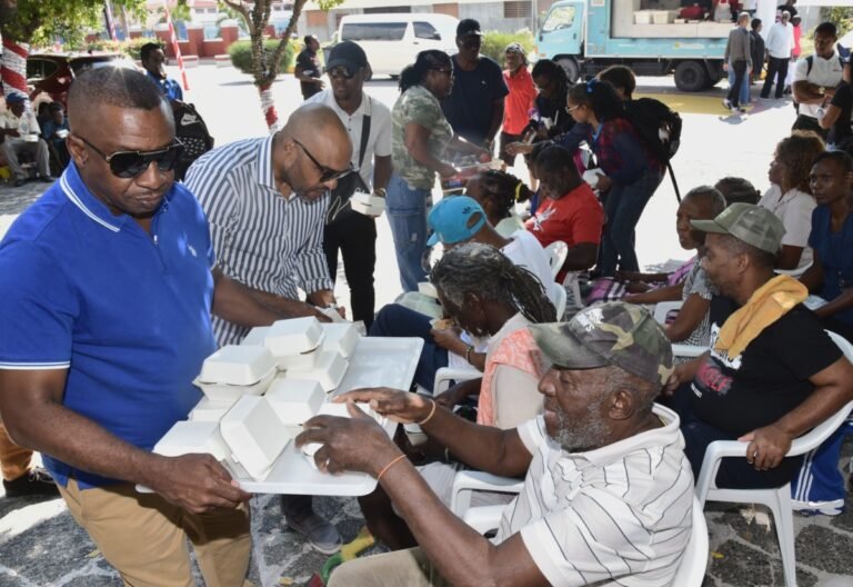 Mayor of Kingston, Councillor Andrew Swaby (left), distributes meals to homeless, senior residents and individuals with disabilities, through the Mayor’s annual New Yr’s Day Feeding on Thursday (January 1) at St. William Grant Park in downtown Kingston. The Kingston and St. Andrew Municipal Company (KSAMC) initiative supplies meals and assist to tons of of homeless and fewer lucky people in downtown Kingston.