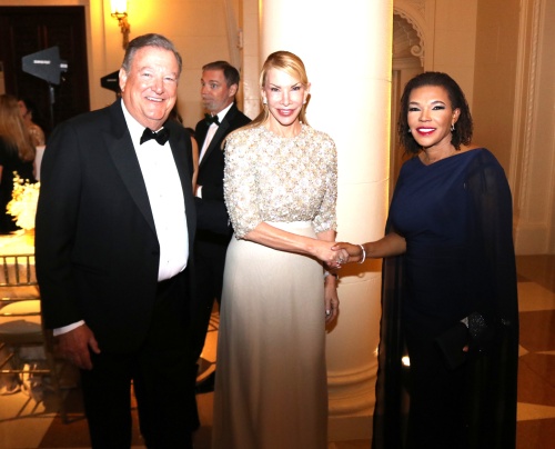Minister within the Workplace of the Prime Minister with Accountability for Effectivity, Innovation and Digital Transformation, Ambassador the Hon. Audrey Marks (proper), is greeted by Tree of Life Basis Founder and President, Amanda Schumacher, upon her arrival on the organisation’s glittering awards ceremony, held on January 11 on the famend Breakers Palm Seashore Resort in Florida. Wanting on is Charles Schumacher.