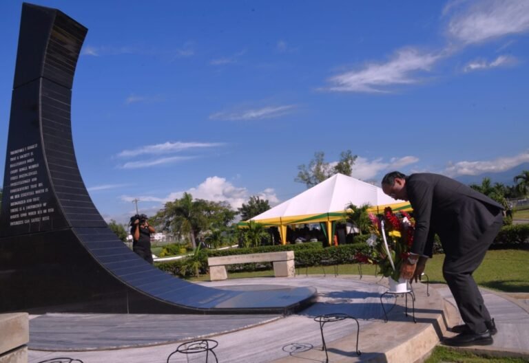 Minister of Native Authorities and Group Growth, Hon. Desmond McKenzie, pays tribute to the late former Prime Minister, the Most Hon. Michael Manley, throughout a floral tribute at Nationwide Heroes Park in downtown Kingston on Tuesday (December 10) to commemorate the a centesimal anniversary of Mr. Manley’s beginning. Mr. Manley, who was Jamaica’s fourth Prime Minister, served from 1972 to 1980 and 1989 to 1992. He was born on December 10, 1924 and died on March 6, 1997.