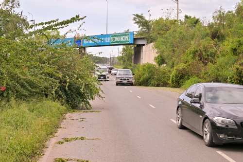 Motorists manoeuvre fallen timber alongside the westbound part of the Mandela Freeway on Wednesday (October 29). The realm was cleared by the Nationwide Strong Waste Administration Authority (NSWMA) to permit for easy circulation of site visitors.