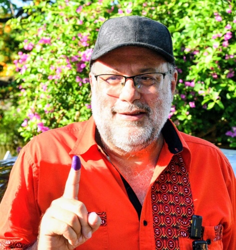 Chief of the Opposition, Mark Golding, reveals his inked index finger after casting his vote within the 2025 Normal Election on the polling station on Dillsbury Avenue in Jack’s Hill, St. Andrew North Jap, on Wednesday (September 3).