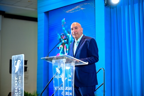 Chairman of the Sagicor Basis Jamaica, Christopher Zacca, addresses the Sagicor Basis Scholarship Awards Ceremony, held at The Jamaica Pegasus resort in New Kingston on Tuesday (August 12).