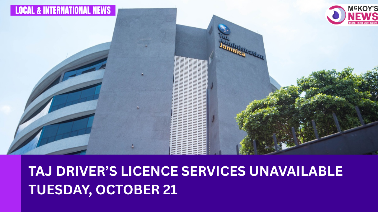 KINGSTON, Jamaica – The Tax Administration Jamaica (TAJ) is advising members of the general public that driver’s licence transactions is not going to be processed on Tuesday, October 21, attributable to delays arising from scheduled upkeep of its driver’s licence system.