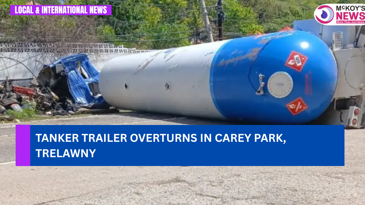 Trelawny, Jamaica (Mckoy’s Information) – Members of the Jamaica Fireplace Brigade (JFB) and the Jamaica Constabulary Pressure (JCF) are actually on the scene of an overturned tanker trailer in Carey Park, Trelawny. The automobile, which was transporting petrol, is mendacity on its facet and blocking the primary roadway, forcing site visitors to be rerouted.