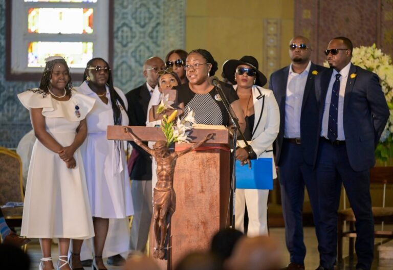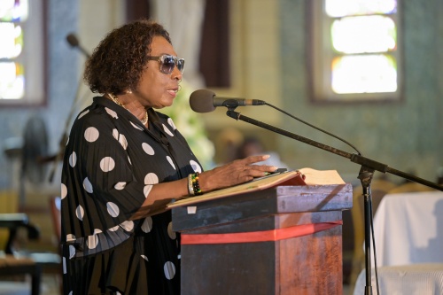 Minister of Tradition, Gender, Leisure and Sport, Hon. Olivia Grange, pays tribute to late Jamaican boxer, Michael McCallum, throughout his thanksgiving service held on the Holy Trinity Cathedral in Kingston on Saturday (Aug. 16).